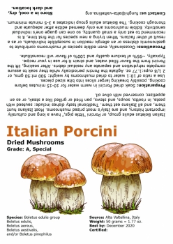 These are the same dried Porcini that the seller eats at home in both the USA and Italy, and that he gives to friends at Christmas and other festive occasions. Fortunately, over the years he has become better at finding the elusive Porcini, and can now offer some of them to you.
